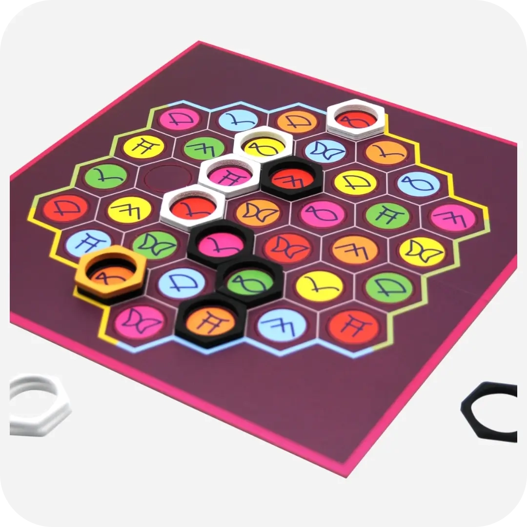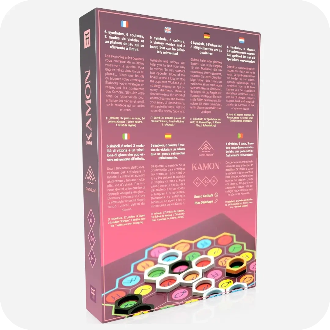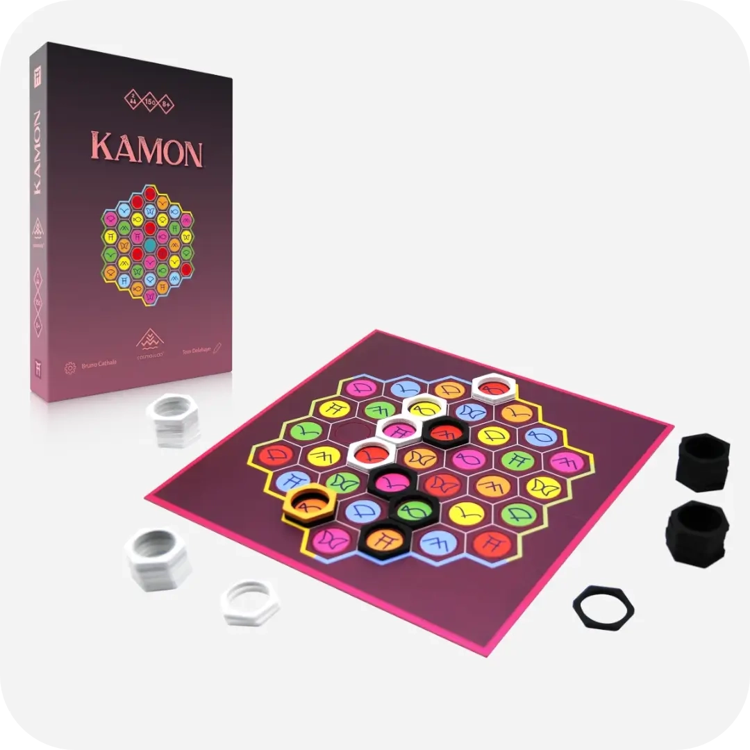 Daag jezelf uit met Kamon! In dit spannende bordspel probeer jij door slim combineren van kleuren en symbolen je tegenstander te slim af te zijn. Ben jij scherp genoeg om te winnen? Laat je verrassen en ervaar waarom Kamon elk potje anders is – lees snel verder voor meer informatie!