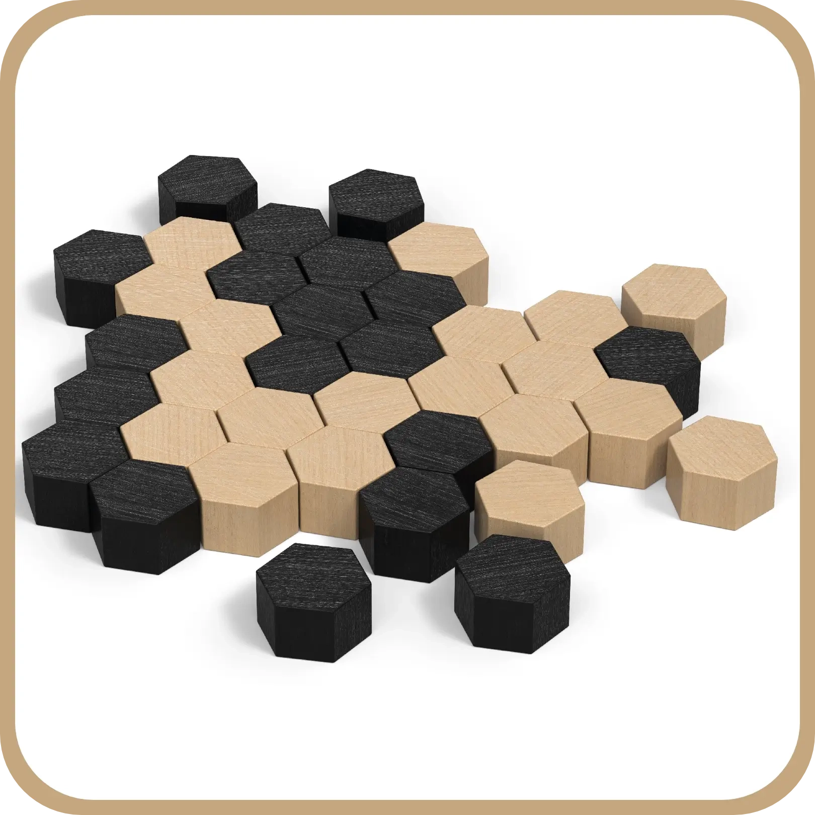 Spelers leggen om de beurt een zeshoekige steen op tafel. Het doel van het spel is een aaneenschakeling van 6 stenen te maken. De vorm van de aaneengeschakelde steen kan bestaan uit een rij, een grote zeshoek of een pyramide. Dit spel is echt een aanrader.