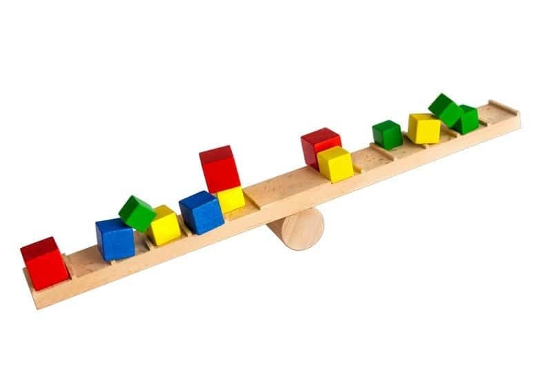 De spelers krijgen allebei eenzelfde set blokjes. Het doel is om als eerste je set blokjes op de wip te plaatsen.