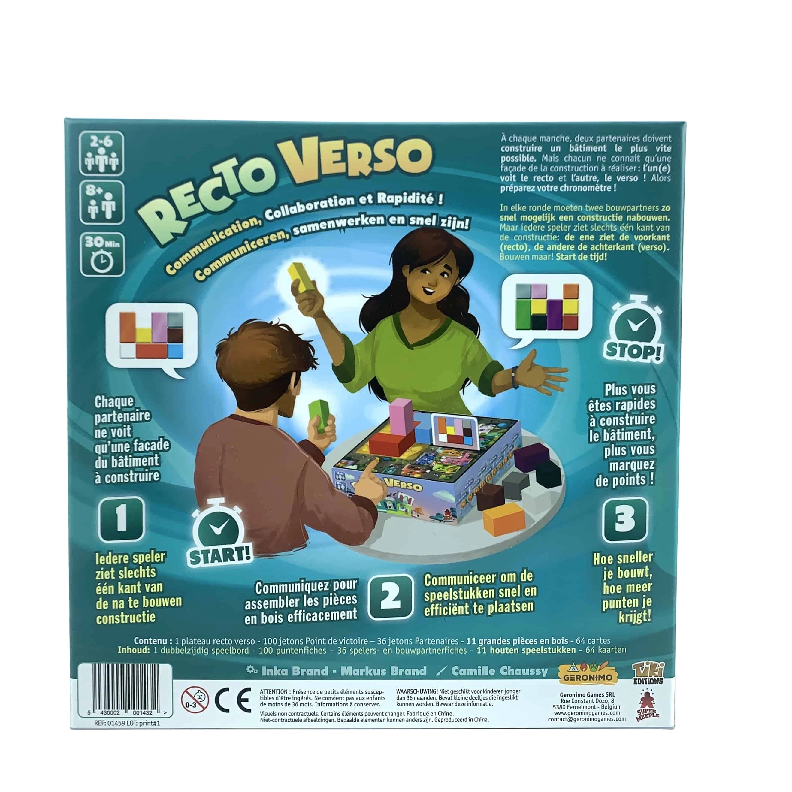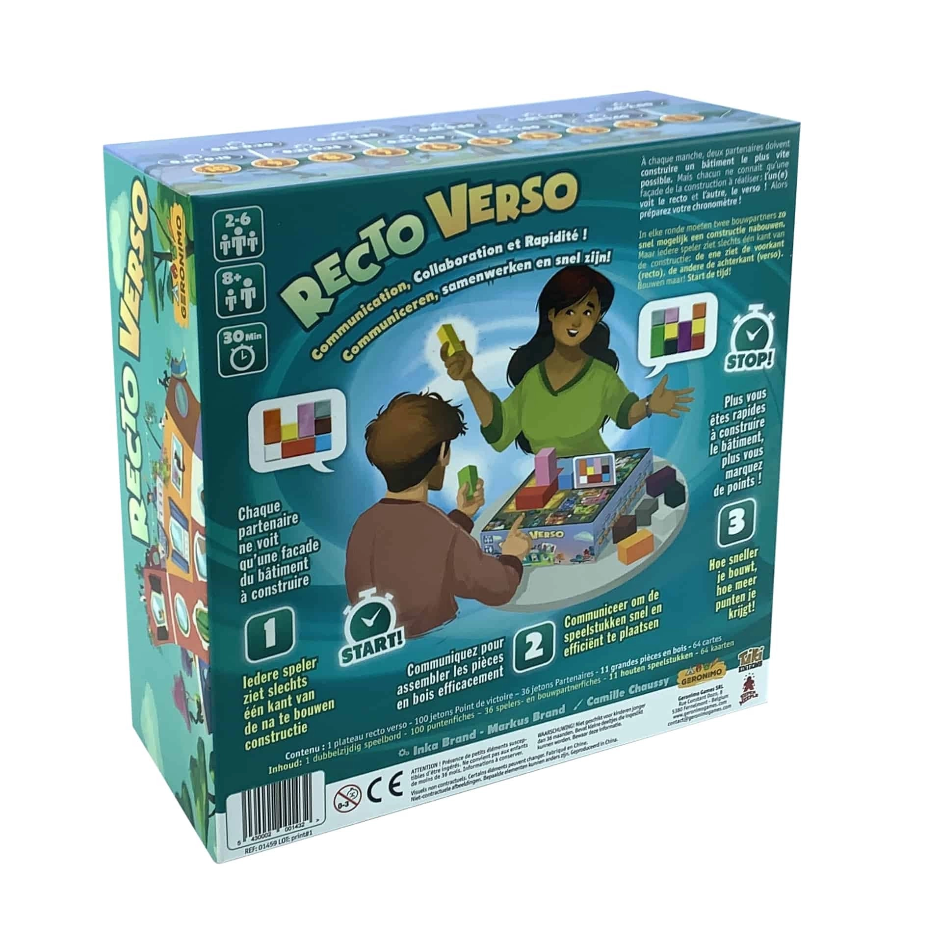 Recto Verso is een heruitgave van het waanzinnig leuke coöperatieve familiespel La Boca, dat vroeger werd uitgegeven door Kosmos. De uitvoering is iets veranderd, maar het spelprincipe is gelijk gebleven.