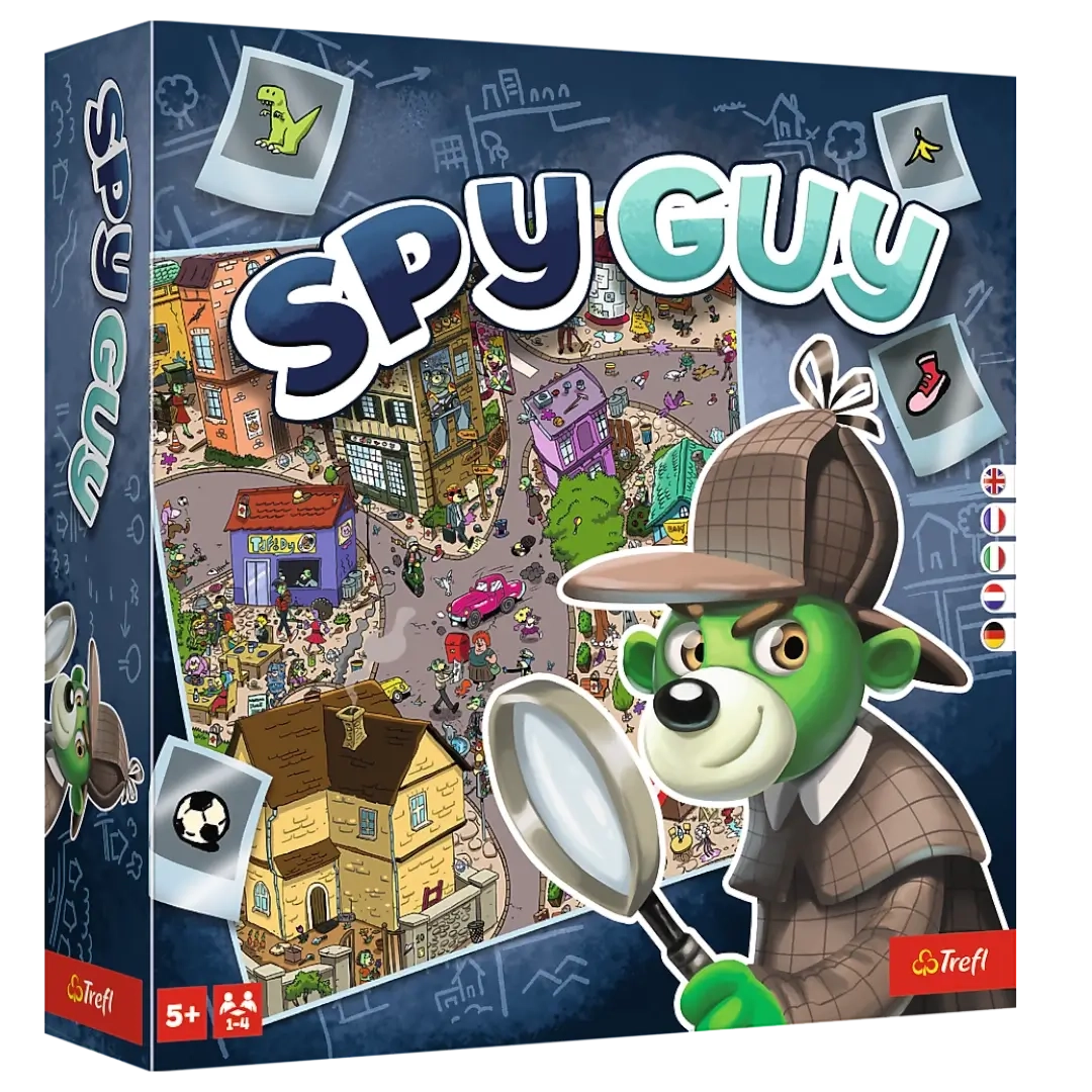 In Spy Guy help jij samen met andere spelers de superdetective SpyGuy. Jullie belangrijkste missie is simpel, maar allesbehalve makkelijk: vang Dr. Moritz voordat hij de haven bereikt en de stad uitglipt. Om hem te pakken, moeten jullie in de wirwar van de stad zoveel mogelijk aanwijzingen vinden. Elke ronde zoek je – in een gevecht tegen de tijd – naar specifieke items op het kleurrijke speelbord. Hoe meer aanwijzingen je vindt, hoe sneller Spy Guy de dief kan inhalen. Maar let op: Dr. Moritz beweegt met ieder spoor dat hij achterlaat sneller richting zijn ontsnapping. Lukt het niet om hem bij te benen? Dan wint de boef en verliest het team. Verliezen doen jullie samen, maar winnen smaakt samen nóg beter!
