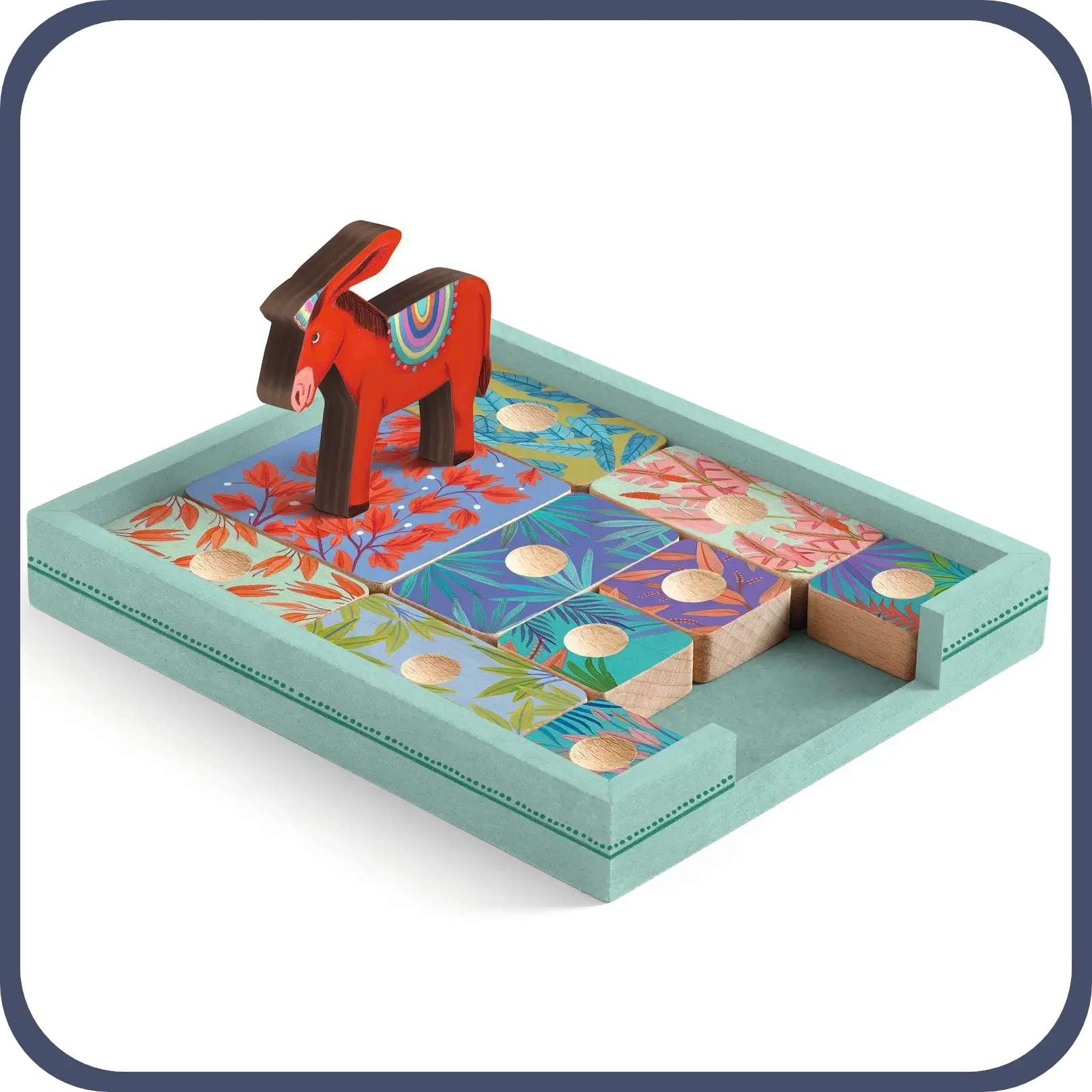 Duik in de wereld van Ezeltje strekje, een uitdagend denkspel dat je hersens laat kraken en je strategisch inzicht op de proef stelt! Bij  spel zijn, net als bij de andere spellen uit de Sologic serie van Djeco, geduld, planning en een slimme aanpak essentieel. De eenvoudige regels in combinatie met de vele mogelijke zetten zorgen voor urenlang speelplezier. Dit spel is gemaakt van duurzaam hout, en elk speelstuk voelt solide aan. Dit is echt een spel voor 1 speler dat je niet meer wilt wegleggen.