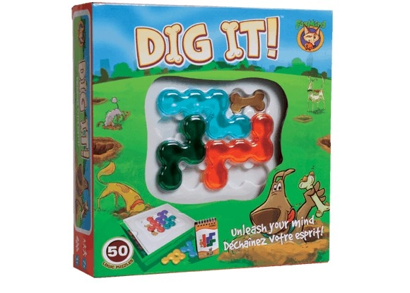 Dit it! is een uitdagend denkspel van Foxmind. Het doel van het spel is om het bot bloot te leggen. Dat doe je doe je door de overige speelstukken te verplaatsen, draaien en te kantelen. Ze moeten echter wel allemaal weer op het speelbord gelegd worden.
