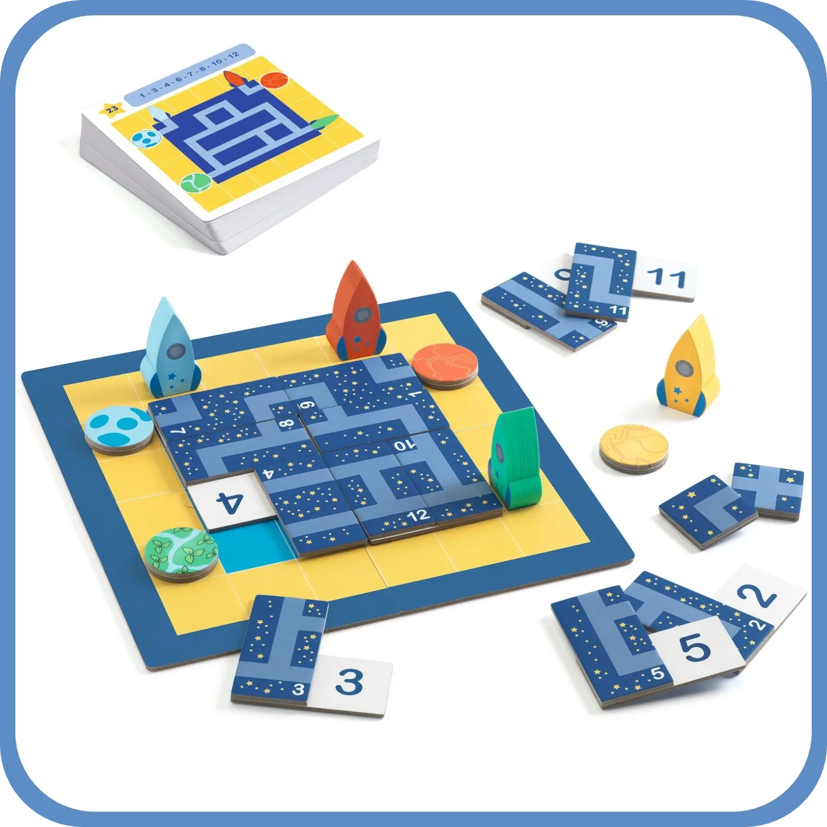 Leid de raketten naar hun planeet door de enig mogelijke galactische route te bouwen. Een origineel gebruik van in elkaar schuivende dominostenen om vooruit te komen! 4 oplopende moeilijkheidsgraden. 1 oplossing per uitdaging.