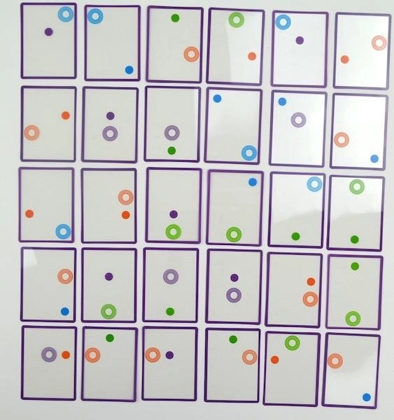 Maak zoveel mogelijk Swishes door 2 of meer kaarten op elkaar te leggen zodat elke bol in een ring van dezelfde kleur past.