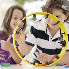 Zorg dat je als eerste al je blokjes in het rad heb kunnen plaatsen en je bent de winnaar.