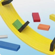 Naarmate het spel vordert zal het rad gaan draaien en zullen er blokjes uit het rad vallen.