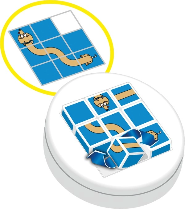 Verplaats je de fiches van kant in 30 beurten. Iedere beurt telt -ongeacht het aantal plaatsen dat je je fiche verplaatst.Een 'pittig' puzzelspelletje.