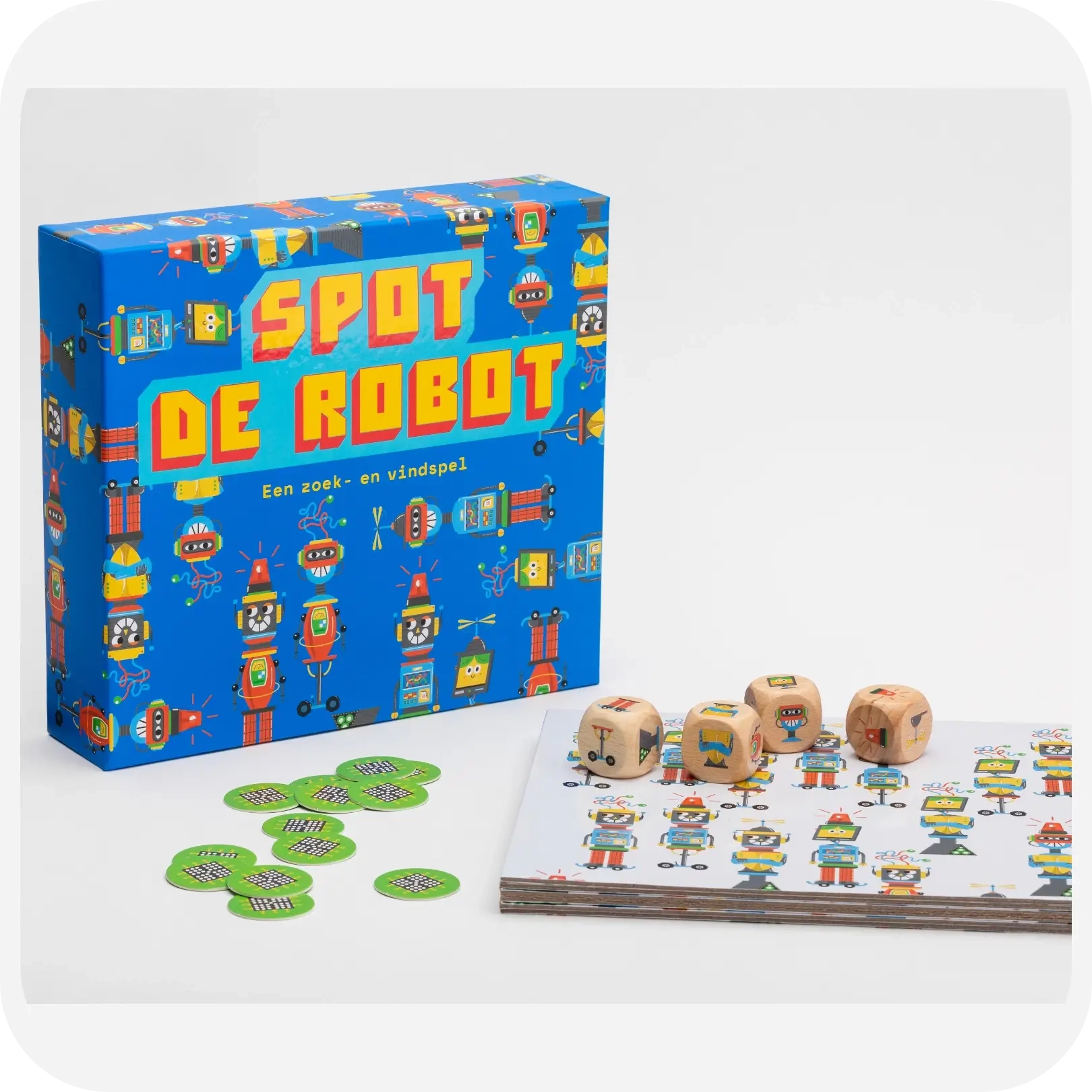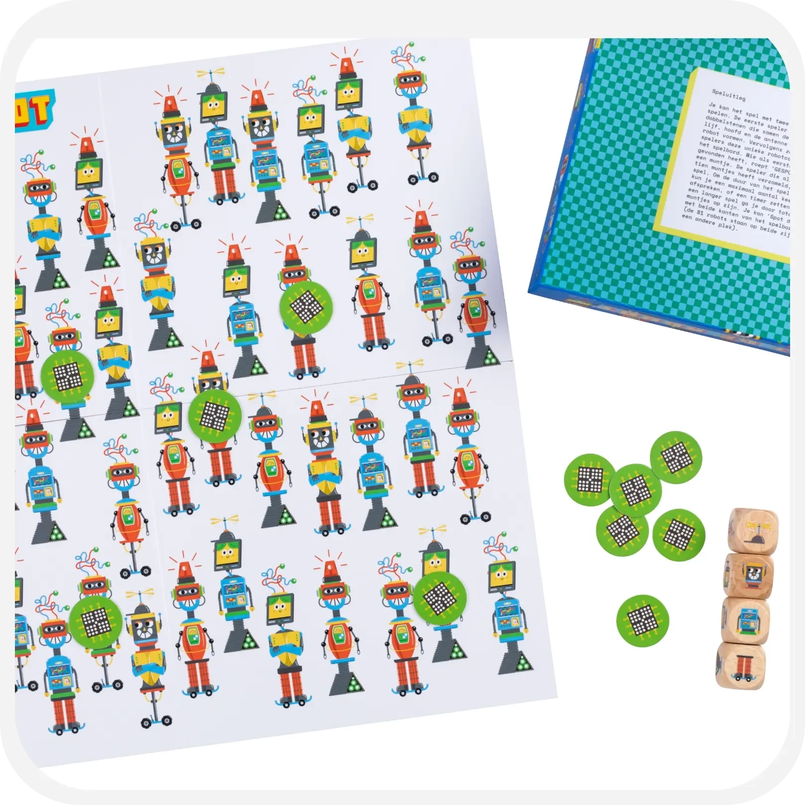 Spot de robot. Een familiespel voor iedereen die scherp, snel en goed in zoeken is.